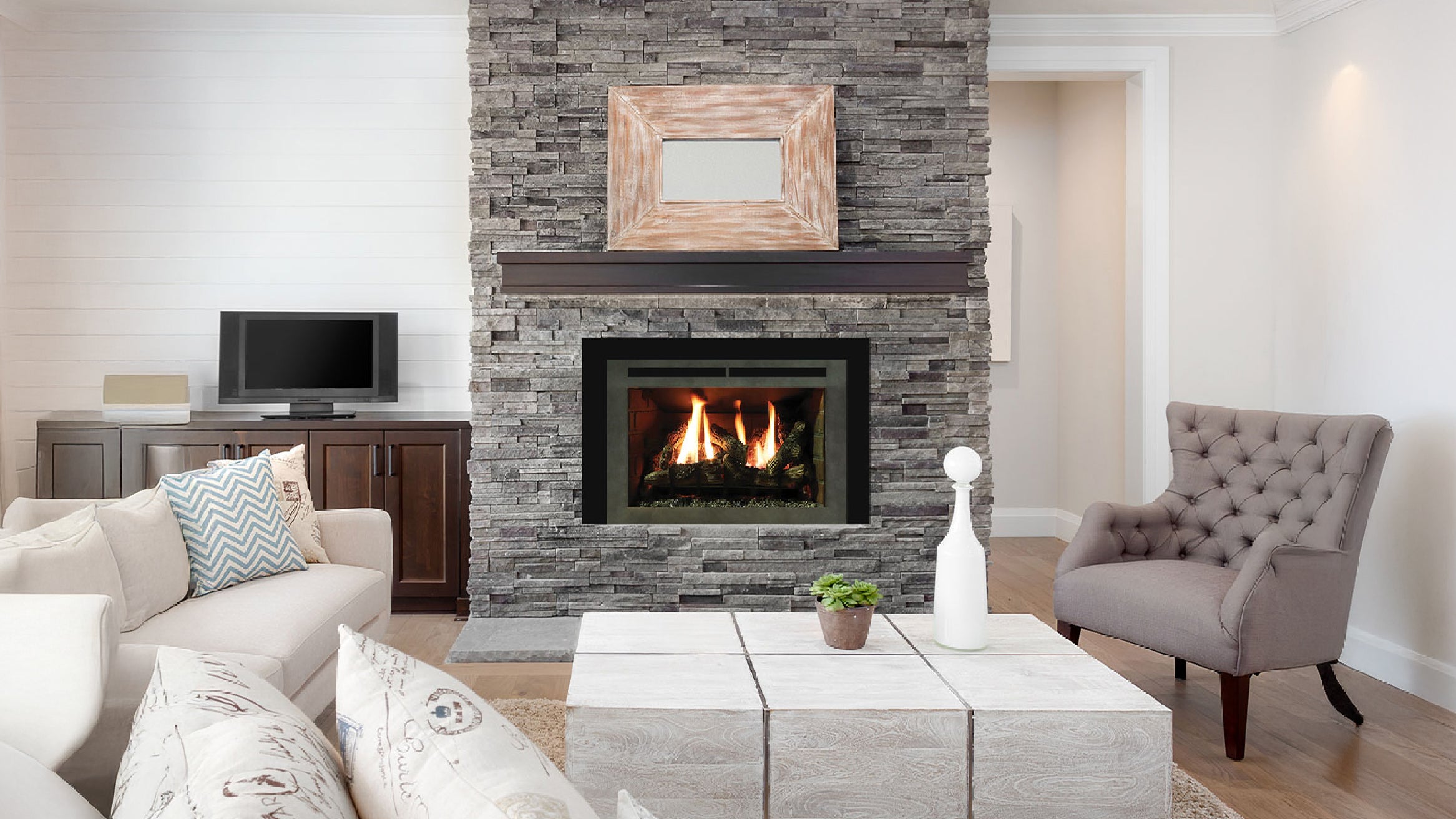 Unlike wood or pellet systems, gas fireplaces produce no ash, smoke, or debris. This means minimal maintenance, improved indoor air quality, and no need for fuel storage.